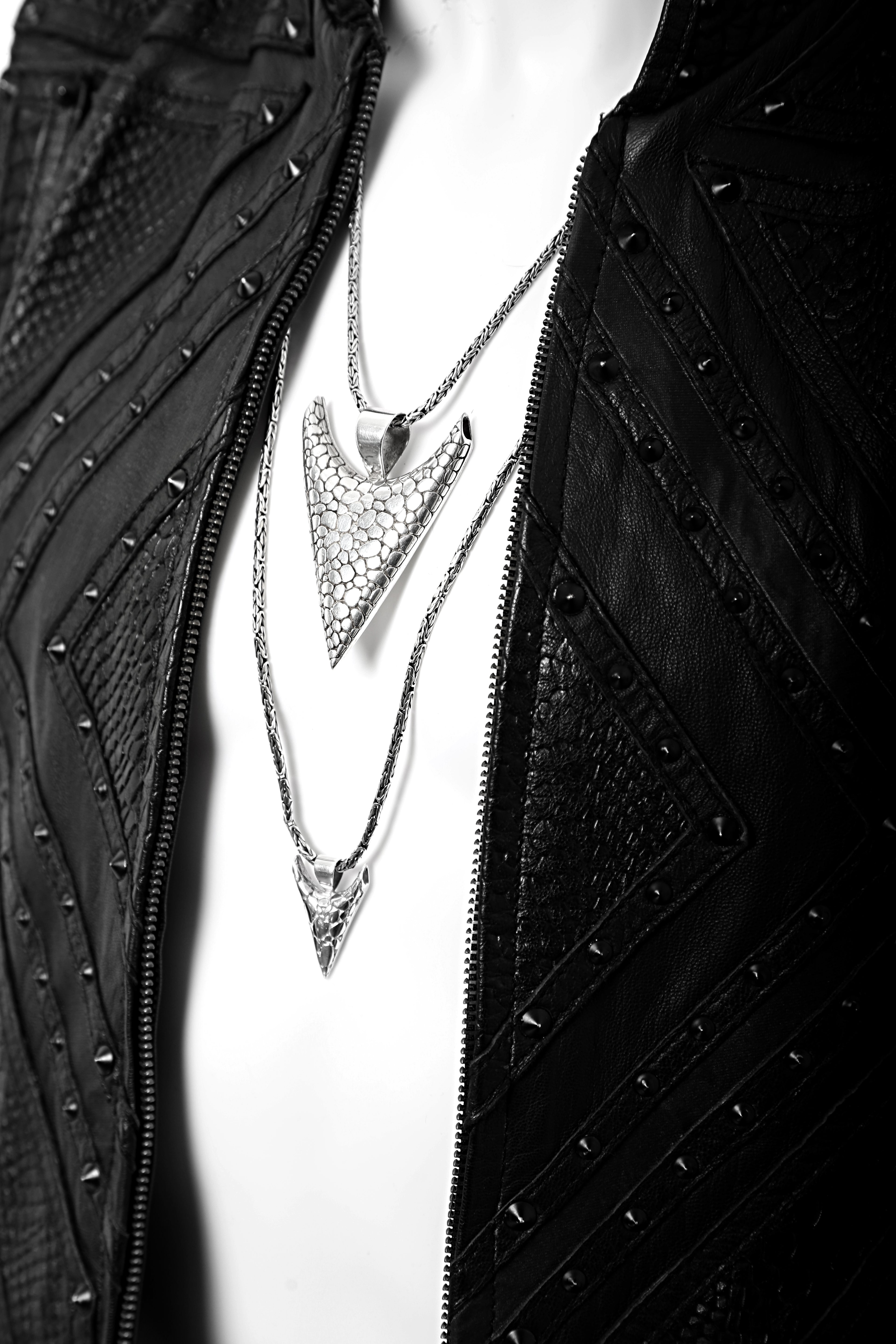 RITUAL presents the Draco Vest, crafted in an intricate combination of sheepskin leather and specially embossed "dragonhide pattern" goatskin leather with black nickel studs. The striking silhouette is tailored to evoke the mythic allure of the dragon in the stars.