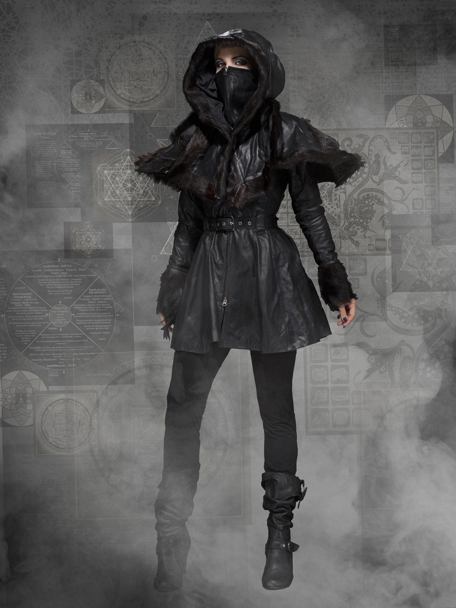 Mid-thigh length goat leather Jacket with detachable goat-fur hood and cuffs. Made with the highest quality 100% stretch silk lining.